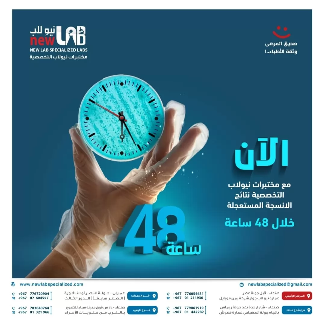 "الان مع مختبرات نيولاب التخصصية قسم الأنسجة يمكنك استلام النتيجة المستعجله خلال 48 ساعه"