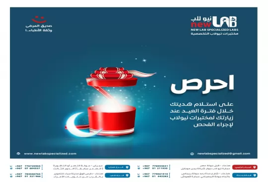 "إحرص على استلام هديتك خلال فترة العيد عند زيارتك لمختبرات نيولاب لإجراء الفحوصات ".